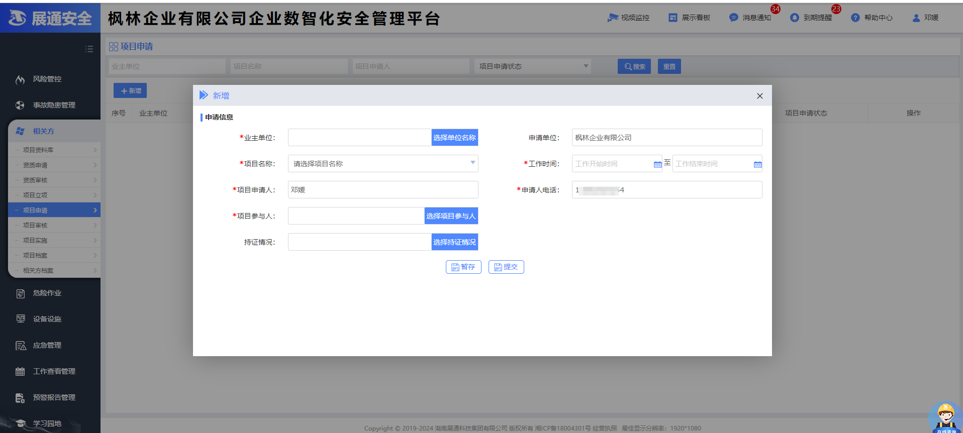 企業數智化安全管理平臺(俗稱企業端)匯集企業管理、風險管控、隱患管理、體系運行、危險作業、AI預警、AI識隱患、應急管理、預警動態、一會三卡、物聯網管理、相關方、設備設施、學習園地等功能于一體,旨在構建標準化、規范化、便捷化的管理流程,引導企業自主開展安全管理工作,建立健全全員安全生產責任制,全面提升企業安全管理數智化水平。