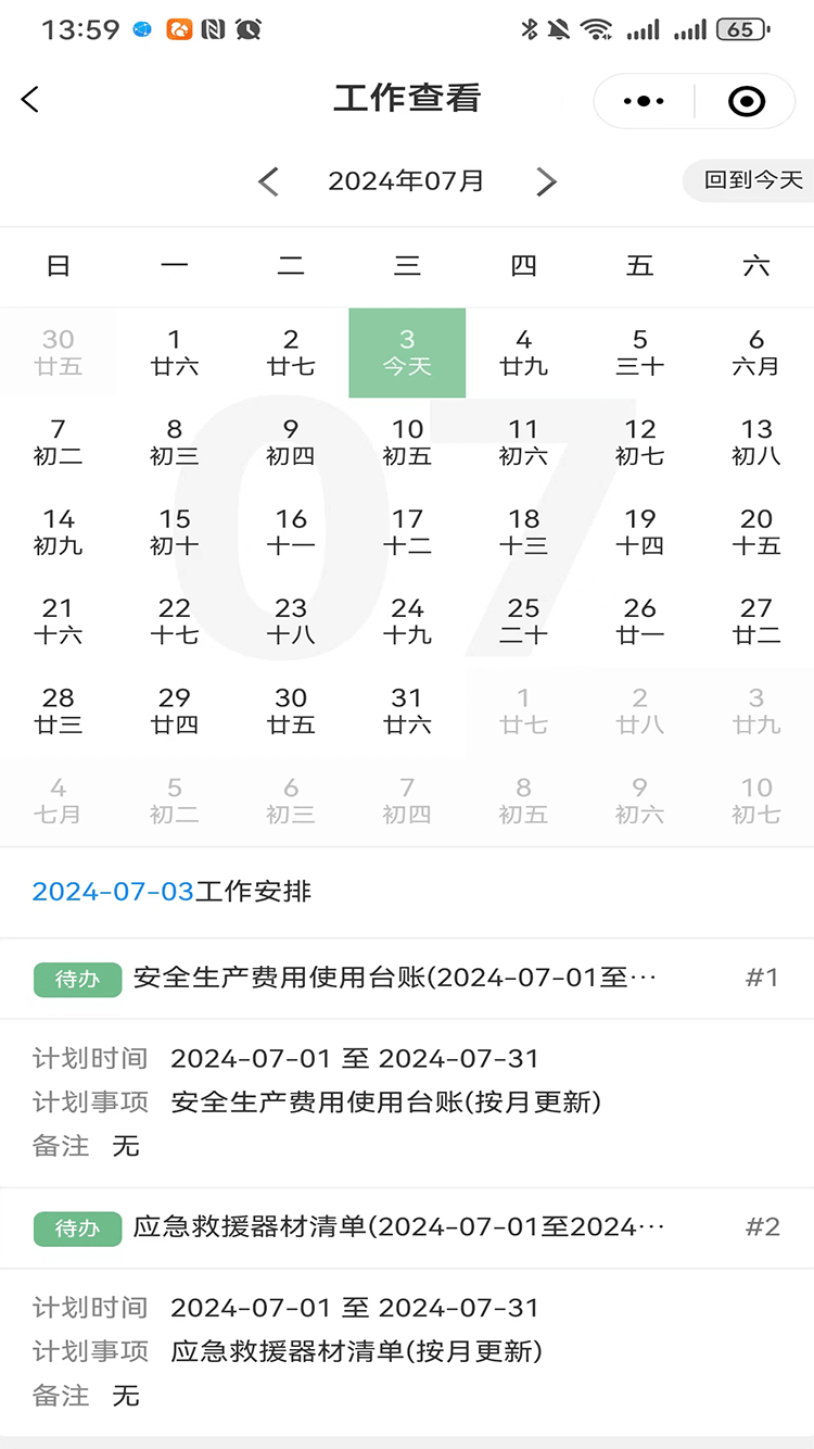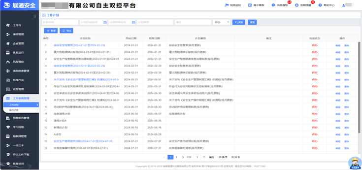 可根據需要及規則設定按月建立安全工作計劃,為安全管理提供便捷的管理工具。