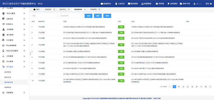 系統(tǒng)配置了企業(yè)安全知識、安全文化、事故案例庫、標準規(guī)范4大內(nèi)容模塊,可供企業(yè)各層級工作人員隨時學(xué)習(xí)或開展培訓(xùn),為企業(yè)營造了良好的安全文化氛圍。